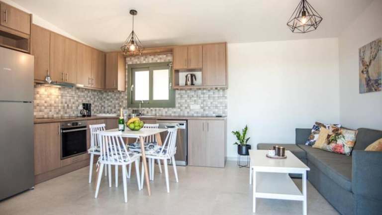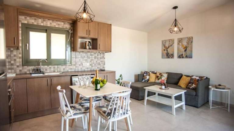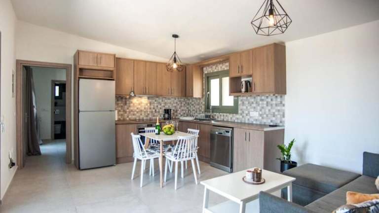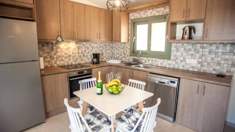 Die klimatisierte Villa Afrato Calma verfügt über 2 Schlafzimmer, ein Wohnzimmer und eine voll ausgestattete Küche. Die Küche bietet einen Kühlschrank und eine Kaffeemaschine. In den 2 Badezimmern stehen Ihnen Duschen und kostenlose Pflegeprodukte zur Verfügung. Handtücher und Bettwäsche werden Ihnen in der Villa gestellt, sodass Sie sich um nichts kümmern müssen.