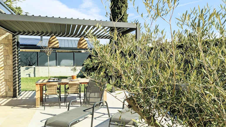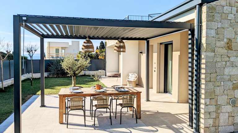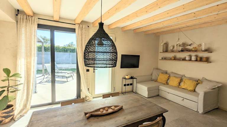 Die Villa verfügt über Klimaanlage, zwei Schlafzimmer, ein Wohnzimmer und eine voll ausgestattete Küche mit Kühlschrank und Kaffeemaschine. Ein Badezimmer mit Bidet und Dusche ist ebenfalls vorhanden. Handtücher und Bettwäsche werden zur Verfügung gestellt.