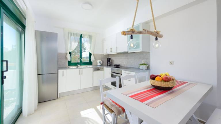 Die Villa Akti verfügt über eine voll ausgestattete Küche, so dass Sie Ihre eigenen Mahlzeiten zubereiten können. Wenn Sie jedoch keine Lust zum Kochen haben, gibt es in der Umgebung verschiedene Restaurants, in denen Sie lokale Spezialitäten und internationale Gerichte genießen können. Lassen Sie sich von den Aromen der griechischen Küche verführen und probieren Sie frischen Fisch und andere köstliche Meeresfrüchte.