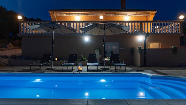 Das Ferienhaus bietet einen Blick auf den Pool und das Meer. Es verfügt über 3 Schlafzimmer, ein Wohnzimmer mit einem Satelliten Flachbild-TV sowie eine gut ausgestattete Küche. Darüber hinaus stehen 2 Badezimmer mit einem Bidet und einer Dusche zur Verfügung. Handtücher und Bettwäsche werden bereitgestellt.