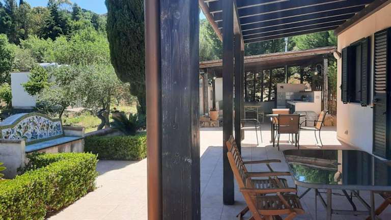 Die Villa al Presti, Vacanze in pieno relax bietet eine klimatisierte Unterkunft mit Blick auf die Berge und den Garten. Den Gästen stehen kostenloses WLAN sowie ein Privatparkplatz zur Verfügung. Zur Ausstattung der Villa gehört eine Terrasse mit Meerblick und eine Veranda / Patio.