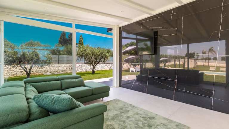 Die Villa verfügt über zwei klimatisierte Schlafzimmer und zwei Badezimmer, die mit einem Bidet, einer Dusche und einem Haartrockner ausgestattet sind. Dazu gibt es einen komfortablen Sitzbereich und einen Essbereich. Die Küche ist vollständig eingerichtet und umfasst einen Kühlschrank, einen Geschirrspüler und einen Ofen.