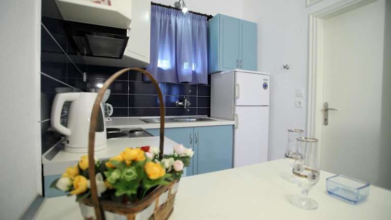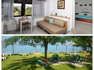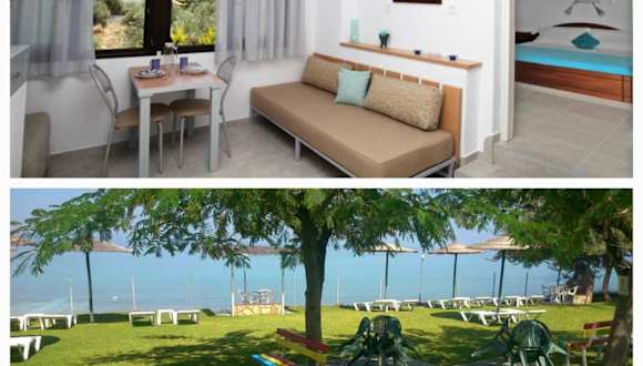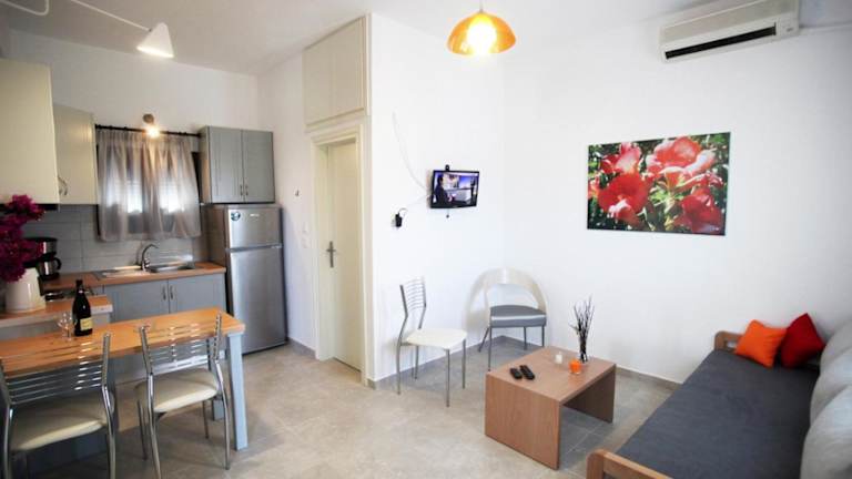 Die klimatisierten Wohneinheiten sind mit Fliesenböden ausgestattet und verfügen über ein eigenes Badezimmer. Zur Ausstattung gehören ein Flachbild-TV, ein Kleiderschrank sowie eine vollständig eingerichtete Küche mit Kühlschrank, Herdplatte, Kaffeemaschine und Wasserkocher. Darüber hinaus gibt es eine Terrasse mit Meerblick.