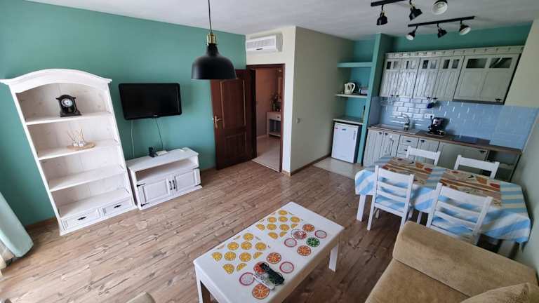 Das Vila Alegra Apartment befindet sich in Kavarna in der Provinz Dobrich. Die Unterkunft liegt direkt am Strand und bietet somit einen einfachen Zugang zu den herrlichen Sandstränden und dem kristallklaren Wasser des Schwarzen Meeres. In der Nähe finden Sie auch verschiedene Restaurants, Bars und Geschäfte, in denen Sie lokale Spezialitäten und Souvenirs genießen können. Die Region Dobrich ist auch für ihre Naturschönheiten und historischen Sehenswürdigkeiten bekannt, die es zu entdecken gilt.