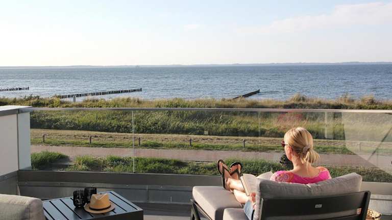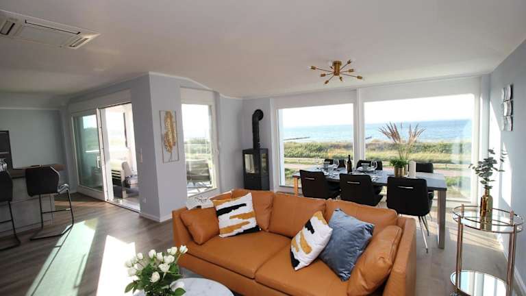 Die Villa Am Meer Glowe Apartment OG ist eine Wohnung direkt am Strand und bietet Gästen eine Terrasse mit Meerblick. Die Ferienwohnung ist klimatisiert und umfasst mehrere Annehmlichkeiten wie kostenloses WLAN und einen Parkplatz.