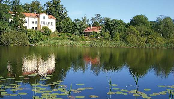 Die Villa am Trumpf befindet sich in Melzow, Brandenburg, umgeben von malerischer Natur. Die Unterkunft liegt in der Nähe des Klosters Chorin, welches etwa 48 km entfernt ist. Die Umgebung bietet zahlreiche Möglichkeiten für Aktivitäten in der Natur, wie Wandern und Fahrradfahren.