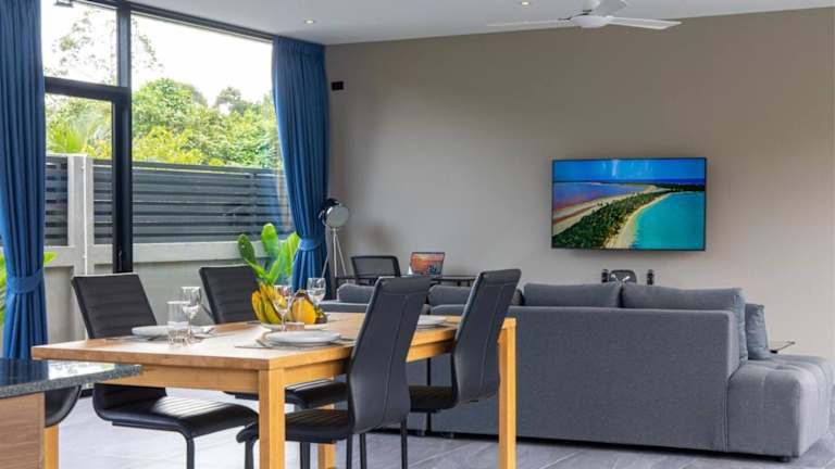 Die Villa ist klimatisiert und umfasst zwei Schlafzimmer. Zur Ausstattung gehören ein Flachbild-TV sowie eine Küche, die mit einem Kühlschrank und einem Ofen versehen ist. Handtücher und Bettwäsche werden bereitgestellt.