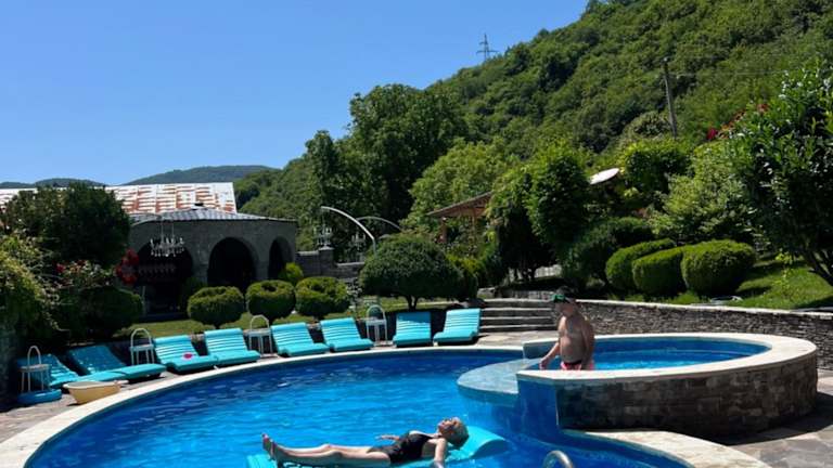Die Villa Ananuri ist eine charmante Unterkunft mit einem saisonalen Außenpool in Ananuri, nur 60 km von Tiflis entfernt. Hier können Sie sich auf kostenfreies WLAN, Privatparkplätze und eine herrliche Terrasse mit Blick auf den üppigen Garten freuen. Die Villa bietet eine gut ausgestattete Küche, eine Sauna und die Möglichkeit, verschiedene Veranstaltungen wie Hochzeiten und Abschlussfeiern zu organisieren. Die Umgebung lädt zum Angeln ein und der internationale Flughafen Tiflis ist 80 km entfernt.