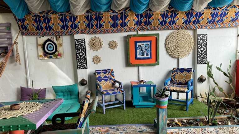Die Villa Andalusia Dahab blue bietet Übernachtungsmöglichkeiten in einer angenehmen Umgebung mit einem Garten, kostenfreiem Privatparkplatz und einer Terrasse.