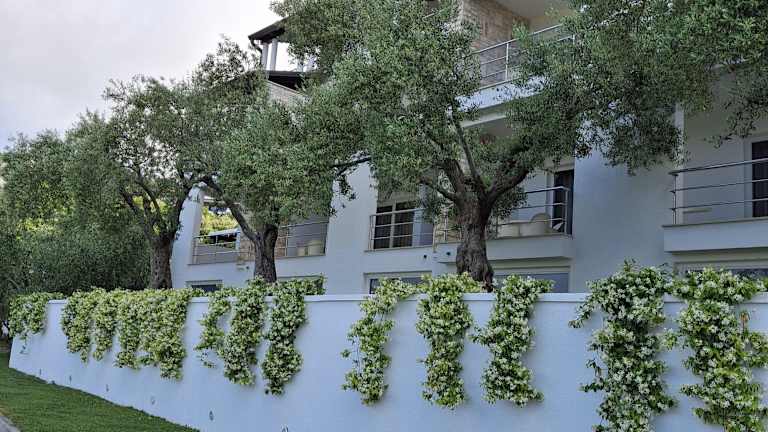 Das Hotel bietet einen wundervollen Außenpool mit Whirlpool und Terrasse, wo Sie sich entspannen und ein romantisches Abendessen genießen können. Sie können auch eine Präsentation und Verkostung ausgewählter, hausgemachter Olivenöle buchen, um mehr über die lokale Küche zu erfahren. In der Umgebung gibt es auch zahlreiche Möglichkeiten für Aktivitäten wie Tennis, Windsurfen, Segeln und Tauchen.