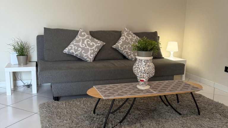 Die Villa umfasst 2 Schlafzimmer, ein Wohnzimmer sowie eine gut ausgestattete Küche mit Kühlschrank und Ofen. Das Badezimmer ist mit einem Bidet ausgestattet. Handtücher und Bettwäsche werden bereitgestellt.