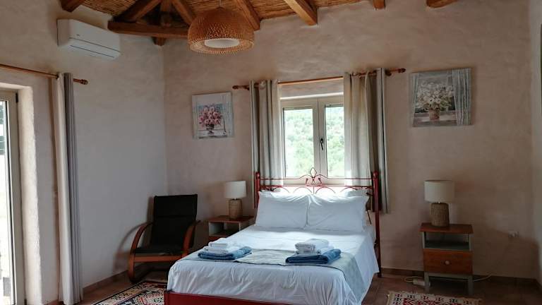 Die Villa umfasst 4 Schlafzimmer, ein Wohnzimmer sowie eine voll ausgestattete Küche mit Kühlschrank und Kaffeemaschine. Die Unterkunft verfügt zudem über ein Badezimmer mit Bidet und Dusche. Handtücher und Bettwäsche werden bereitgestellt, und ein Grill ist ebenfalls vorhanden.