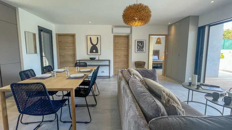 Die Villa verfügt über ein Wohnzimmer, eine voll ausgestattete Küche mit Kühlschrank und Kaffeemaschine, sowie 2 Badezimmer, die mit einer Dusche und einem Haartrockner ausgestattet sind. Handtücher und Bettwäsche werden zur Verfügung gestellt.