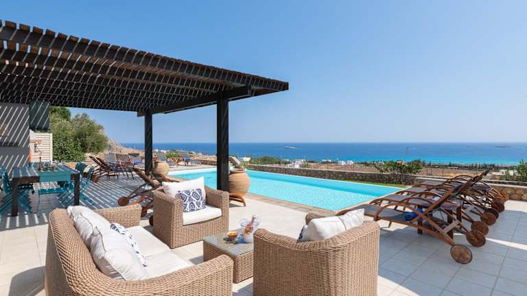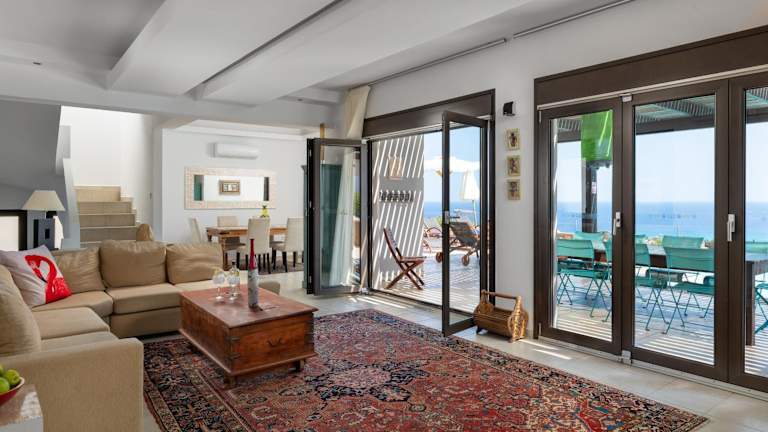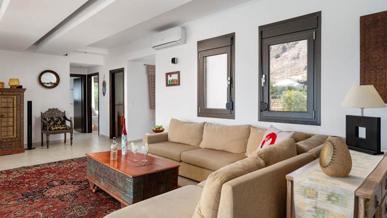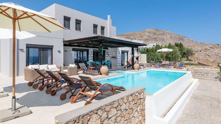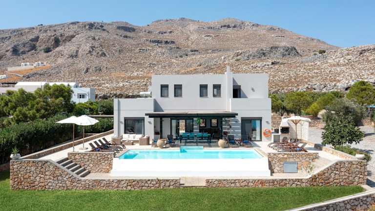 Die Villa verfügt über einen Außenpool, in dem Sie sich an warmen Tagen erfrischen können. Entspannen Sie auf der Terrasse und genießen Sie den atemberaubenden Blick auf die umliegende Landschaft. In der Nähe können Sie wandern und die Natur erkunden. Besuchen Sie auch die nahe gelegenen Strände und Sehenswürdigkeiten wie Prasonisi und das antike Kamiros. Der internationale Flughafen Rhodos ist nur 50 km entfernt und bietet eine gute Anbindung an die Villa.