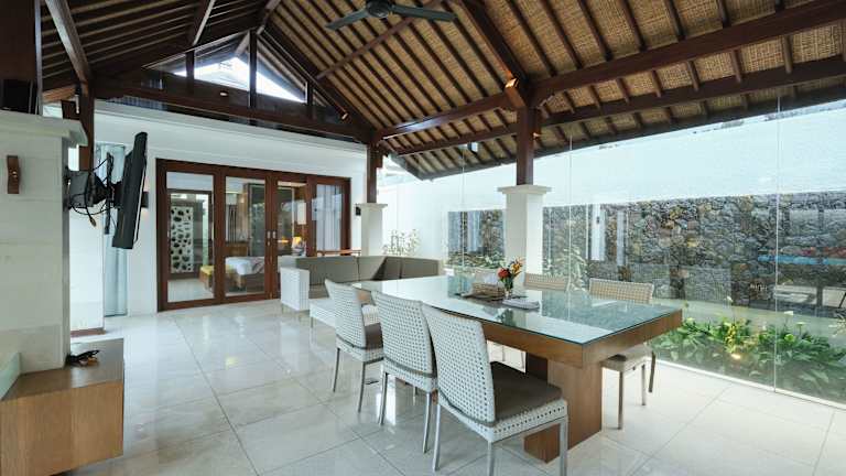 Die Villa Ava bietet geräumige und elegant gestaltete Villen mit moderner balinesischer Innenausstattung. Jede Villa verfügt über raumhohe Fenster, einen separaten Sitzbereich mit bequemen Sofas und ein großes Badezimmer mit einer luxuriösen Badewanne. Die Villen sind auch mit einer voll ausgestatteten Küche ausgestattet, so dass Sie Ihre eigenen Mahlzeiten zubereiten können.