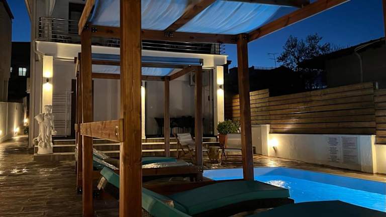 Die Villa azzuro in Nea Kallikratia ist eine wunderbare Unterkunft, die alles bietet, was man für einen entspannten Urlaub braucht. Mit einem Außenpool, einem Garten, einer Terrasse und kostenfreiem WLAN können Sie hier die Sonne Griechenlands in vollen Zügen genießen. Die Villa selbst ist geräumig und gut ausgestattet, mit zwei Schlafzimmern, einem Wohnzimmer, einer voll ausgestatteten Küche und einem luxuriösen Badezimmer. Handtücher und Bettwäsche werden gestellt und ein Whirlpool steht Ihnen zur Verfügung. Wenn Sie gerne grillen, bietet die Villa auch einen Grillplatz. Der Strand von Nea Kallikratia ist nur 600 m entfernt und der Strand von Kampos erreichen Sie nach 1,9 km. Der Flughafen Thessaloniki ist nur 30 km entfernt, so dass Sie schnell und bequem anreisen können.