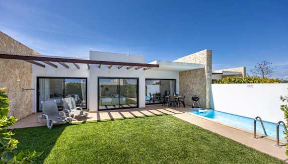 Die Villa umfasst zwei getrennte Schlafzimmer und eine voll ausgestattete Küchenzeile, die einen Kühlschrank und einen Geschirrspüler beinhaltet. Es gibt zwei Badezimmer, und sowohl Handtücher als auch Bettwäsche werden bereitgestellt.