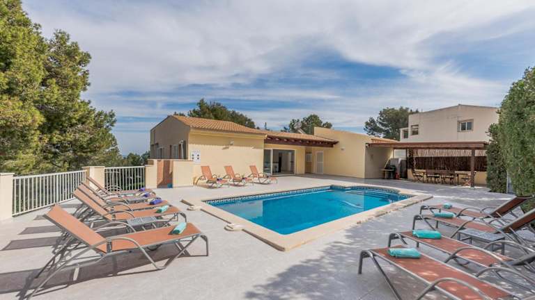 Die Villa verfügt über insgesamt 6 Schlafzimmer und 4 Badezimmer. Die Zimmer sind mit Bettwäsche und Handtüchern ausgestattet und bieten Annehmlichkeiten wie einen Flachbild-TV mit Satellitenkanälen. Ein Essbereich sowie eine voll ausgestattete Küche sind ebenfalls vorhanden. Die Terrasse bietet einen Blick auf den Pool und lädt zum Entspannen ein. Eine Gemeinschaftslounge ist ebenfalls vorhanden.