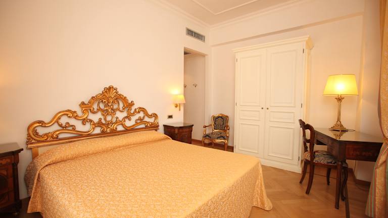 Die 105 Zimmer des Hotels erstrecken sich über 6 Etagen und sind über einen Aufzug erreichbar. Die Zimmer sind mit Holzmöbeln und einer klassischen Dekoration ausgestattet, die eine elegante Atmosphäre schaffen. WLAN nutzen Sie in den Zimmern kostenlos. Die öffentlichen Bereiche des Hotels beeindrucken mit antiken Möbeln, Marmor und eleganten Kronleuchtern.