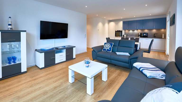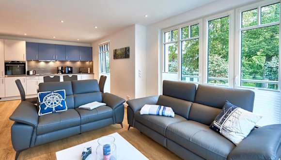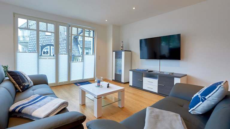 Die Ferienwohnung bietet einen Balkon mit Stadtblick und ist mit 2 Schlafzimmern, einem Wohnzimmer, einem Flachbild-TV sowie einer gut ausgestatteten Küchenzeile mit Kühlschrank und Geschirrspüler ausgestattet. Es sind 2 Badezimmer mit Dusche vorhanden. Handtücher und Bettwäsche können gegen Aufpreis bereitgestellt werden.