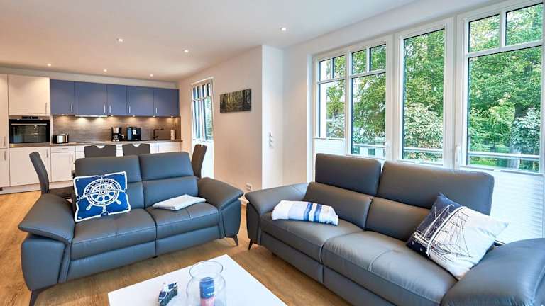 Die Unterkunft Villa Beatrice in Binz - WG 8 ist ein modernes Gebäude, das im Jahr 2023 erbaut wurde. Sie bietet Übernachtungsmöglichkeiten mit Zugang zu einer Sauna.