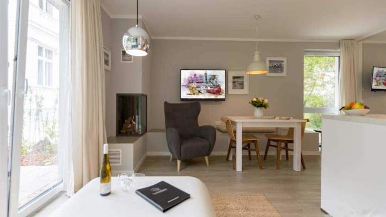 Die Villa Bellevue App. 09 Gartenhaus befindet sich in Heringsdorf, etwa 500 m vom Strand entfernt. Weitere Sehenswürdigkeiten in der Nähe sind der Baltic Park Molo Aquapark in 11 km Entfernung und der Zdrojowy-Park, der 12 km entfernt liegt. Der Bahnhof Swinemünde ist 15 km entfernt und die Seebrücke Ahlbeck liegt in einer Distanz von 4,2 km. Der nächste Flughafen ist der Flughafen Heringsdorf, der sich 12 km von der Unterkunft befindet.