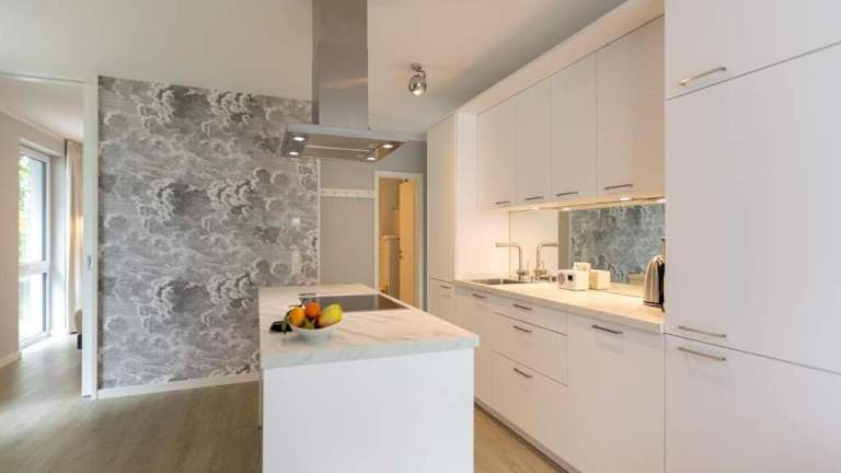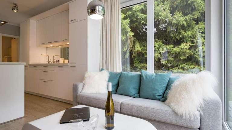 Die Ferienwohnung verfügt über ein Schlafzimmer, einen Flachbild-TV sowie eine voll ausgestattete Küchenzeile, die mit einem Kühlschrank, einem Geschirrspüler, einer Waschmaschine und einem Ofen ausgestattet ist. Zur Verfügung stehen Handtücher und Bettwäsche.