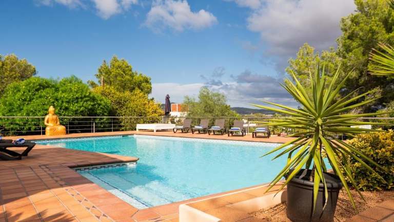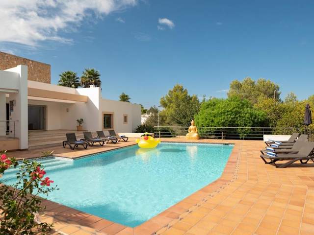 Die Villa Bellissima in der Bucht von San Antonio ist ein traumhaftes Urlaubsdomizil mit einem saisonalen Außenpool, einem eigenen Garten und einer Terrasse. Hier können Sie Ihren Urlaub in vollen Zügen genießen und sich von der atemberaubenden Aussicht auf die Stadt begeistern lassen. Die Villa bietet alle Annehmlichkeiten, die Sie sich wünschen können, einschließlich eines eigenen Pools und kostenfreier Privatparkplätze. Erleben Sie Komfort und Luxus in einer klimatisierten Villa mit 4 Schlafzimmern, einem großzügigen Wohnzimmer und einer voll ausgestatteten Küche. Die Villa Bellissima ist der perfekte Ausgangspunkt, um die Strände Es Pouet, San Antonio und Cala Pinet zu erkunden.