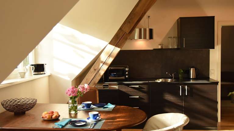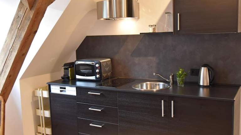 Die Villa Bergmann bietet Selbstversorger-Unterkünfte, so dass Sie Ihre eigenen Mahlzeiten zubereiten können. Jede Wohneinheit verfügt über eine voll ausgestattete Küche mit Geschirrspüler, Kochfeld, Kaffeemaschine und Wasserkocher. Alternativ können Sie auch in den nahegelegenen Restaurants speisen und die lokale Küche genießen.