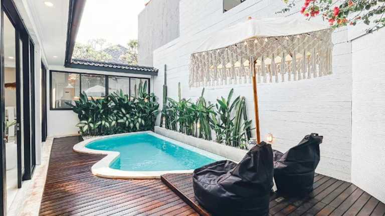 Die Villa Bianca Bali bietet Übernachtungsmöglichkeiten in Form einer klimatisierten Villa mit zwei Schlafzimmern. Die Unterkunft umfasst ein Wohnzimmer, eine voll ausgestattete Küche mit Kühlschrank sowie zwei Badezimmer, die mit Duschen und kostenfreien Pflegeprodukten ausgestattet sind. Zu den Annehmlichkeiten zählen ein Außenpool sowie ein Whirlpool/Jacuzzi, die den Gästen zur Verfügung stehen. Die Unterkunft ist eine Nichtraucherunterkunft mit einem Garten und einer Sonnenterrasse und bietet kostenloses WLAN.