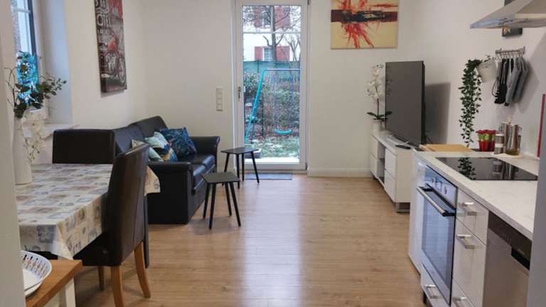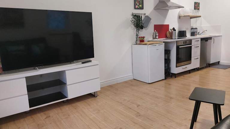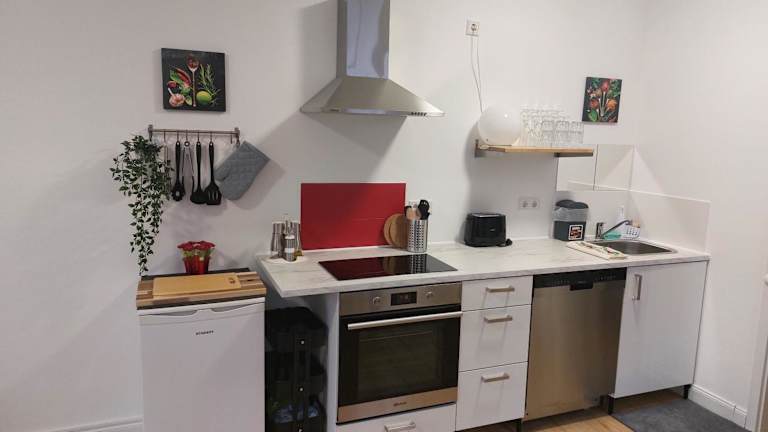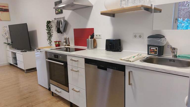 Die Ferienwohnung umfasst ein Schlafzimmer, ein Wohnzimmer sowie ein Badezimmer mit Dusche. Die gut ausgestattete Küche ist mit einem Kühlschrank und einem Geschirrspüler ausgestattet. Zur Ausstattung gehören ein Flachbild-TV, Handtücher und Bettwäsche. Ein Zimmer für Familien ist verfügbar.