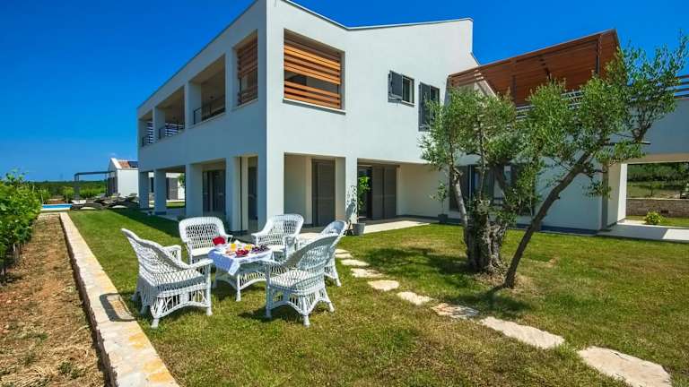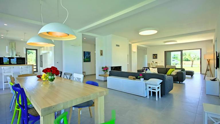 Die Villa umfasst 4 Schlafzimmer, ein Wohnzimmer und eine vollständig ausgestattete Küche, die mit einem Kühlschrank und einer Kaffeemaschine ausgestattet ist. Es stehen 4 Badezimmer mit Bidet und Dusche zur Verfügung. Handtücher und Bettwäsche werden bereitgestellt. Zur Ausstattung gehören außerdem Klimaanlage, Heizung und WLAN in allen Bereichen.