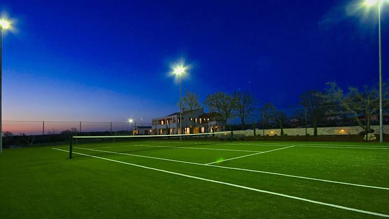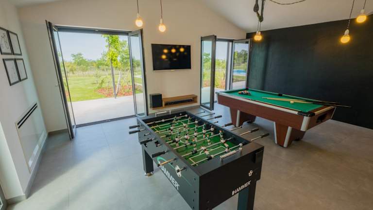 Die Villa bietet einen Außenpool, der saisonal genutzt werden kann. Darüber hinaus sind ein Tennisplatz sowie ein Spielzimmer vorhanden.