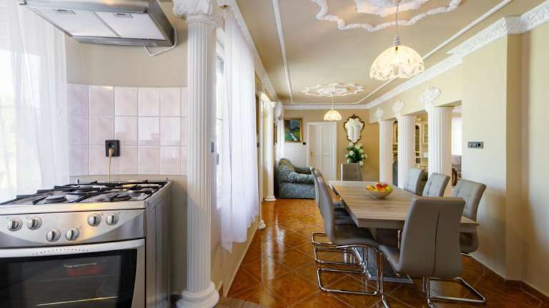 In der Villa Big Thuja können Sie Ihre eigenen Mahlzeiten zubereiten und in der voll ausgestatteten Küche genießen. Alternativ können Sie auch die Restaurants in der Umgebung erkunden und lokale Spezialitäten probieren.