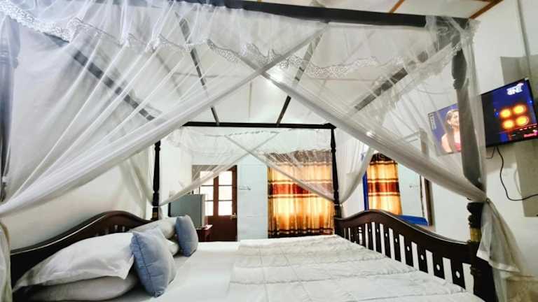 Die Blue Ocean Villa liegt nur 50 m vom wunderschönen Strand von Mirissa entfernt und ist somit der perfekte Ausgangspunkt für Sonnenanbeter und Wassersportbegeisterte. In nur 200 m Entfernung finden Sie den Anbieter für Walbeobachtungstouren Whale Watching Mirissa, der Ihnen unvergessliche Erlebnisse auf dem Meer bietet. Die Villa befindet sich auch in der Nähe von verschiedenen Aktivitäten wie Schnorcheln, Surfen, Tauchen und Radfahren. Darüber hinaus können Sie die Stadt Galle in nur 45 Fahrminuten erreichen und den Regenwald Sinharaja Forest in 1,5 Fahrstunden erkunden. Der internationale Flughafen Bandaranaike ist etwa 3 Stunden Fahrt entfernt.