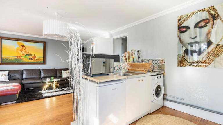 Die Ferienwohnung umfasst ein Schlafzimmer sowie eine Küchenzeile, die mit einem Kühlschrank und einer Mikrowelle ausgestattet ist. Des Weiteren bietet die Unterkunft einen Flachbild-TV, einen Sitzbereich und ein Badezimmer mit Dusche.
