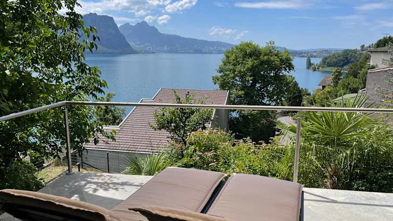 Die Villa Bootsmann liegt in der Nähe eines Badestrandes und bietet eine spektakuläre Seesicht. Die Unterkunft ist ca. 24 km vom KKL Kultur- und Kongresszentrum in Luzern sowie vom Bahnhof und der Kapellbrücke entfernt. Der Flughafen Zürich befindet sich in einer Entfernung von 65 km.