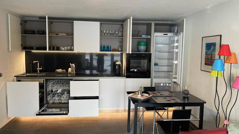 Die Ferienwohnung umfasst ein Schlafzimmer, ein Wohnzimmer und ein Badezimmer mit Dusche. Zur Ausstattung gehören ein Flachbild-TV, eine gut ausgestattete Küchenzeile mit Kühlschrank und Geschirrspüler sowie die Bereitstellung von Handtüchern und Bettwäsche.
