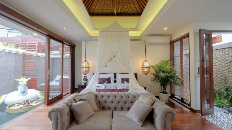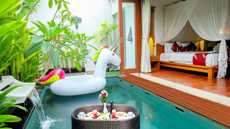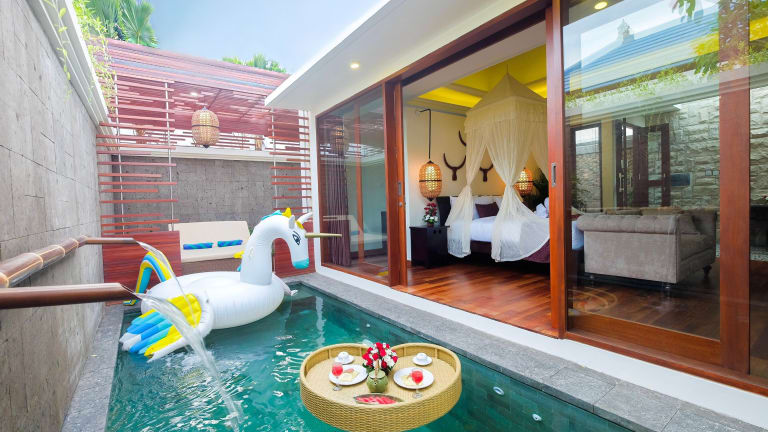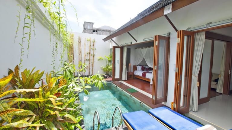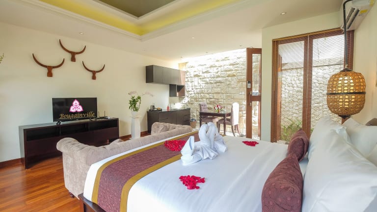 Die Villa Bougainville ist der ideale Rückzugsort für einen entspannten Urlaub in Seminyak. Mit geräumigen Villen, einem eigenen Außenpool und einer Sonnenterrasse bietet die Unterkunft alle Annehmlichkeiten, die Sie für einen erholsamen Aufenthalt benötigen. Die Nähe zu den Stränden und Einkaufsmöglichkeiten sowie die Möglichkeit, zusätzliche Dienstleistungen wie Flughafentransfers und Massagen zu buchen, machen diese Villa zu einer perfekten Wahl für Ihren Bali-Urlaub.