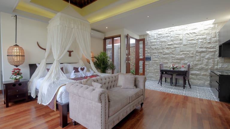 Die Villa Bougainville liegt nur eine kurze Fahrt vom berühmten Double Six Beach entfernt und bietet eine ideale Ausgangslage, um die Strände von Seminyak zu erkunden. Der beliebte Kuta Beach und das Einkaufszentrum Beachwalk sind ebenfalls nur eine 15-minütige Fahrt entfernt. Der internationale Flughafen Bali Denpasar ist in nur 25 Autominuten zu erreichen. Die zentrale Lage der Villa ermöglicht es Ihnen, die zahlreichen Restaurants, Bars und Geschäfte in Seminyak bequem zu erreichen.