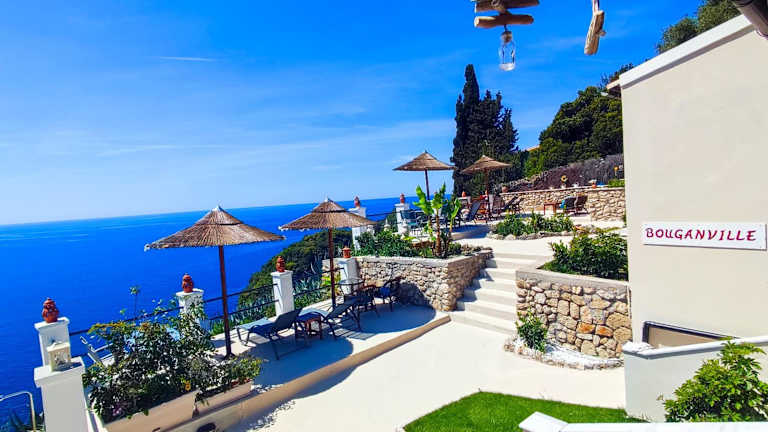 Das Bouganville liegt in Paleokastritsa und ist nur 500 m vom Strand Agia Triada entfernt. Die Umgebung bietet eine malerische Landschaft mit wunderschönen Stränden und kristallklarem Wasser. Die Strände Spiros und Glyko sind ebenfalls in der Nähe. In der Umgebung gibt es auch viele Restaurants, Bars und Geschäfte, die zum Bummeln und Entdecken einladen. Der internationale Flughafen Korfu ist nur 22 km entfernt.