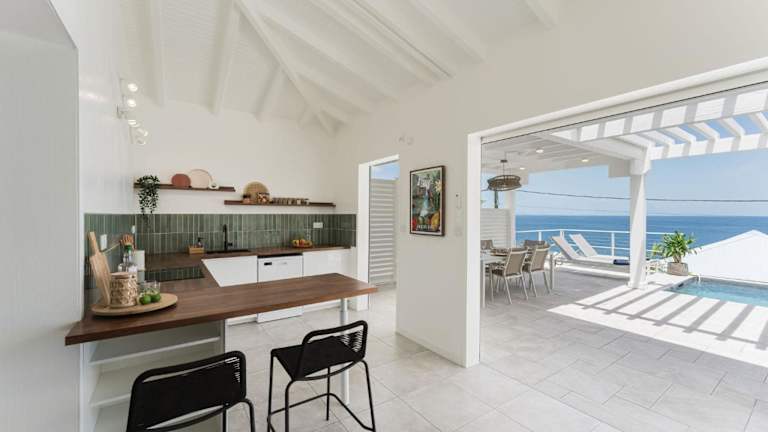 Die Villa verfügt über 3 Schlafzimmer und 2 Badezimmer. Zur Ausstattung gehören Bettwäsche, Handtücher, ein Flachbild-TV mit Satellitenkanälen, ein Essbereich sowie eine voll ausgestattete Küche. Eine Terrasse mit Meerblick ist ebenfalls vorhanden.
