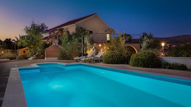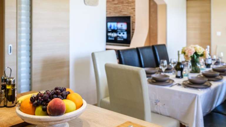 Die voll klimatisierte Villa Bravura Milna Brac with private pool verfügt über 6 geräumige Schlafzimmer und 4 moderne Badezimmer. Das Wohnzimmer lädt mit einem komfortablen Sitzbereich und einem Flachbild-Sat-TV mit DVD-Player zum Entspannen ein. Die voll ausgestattete Küche bietet einen Geschirrspüler und eine Mikrowelle, so dass Sie Ihre eigenen Mahlzeiten zubereiten können.