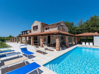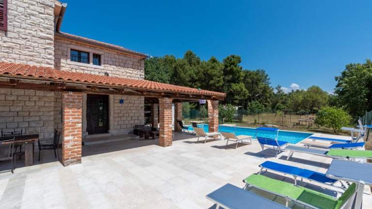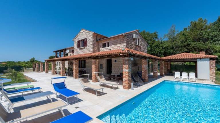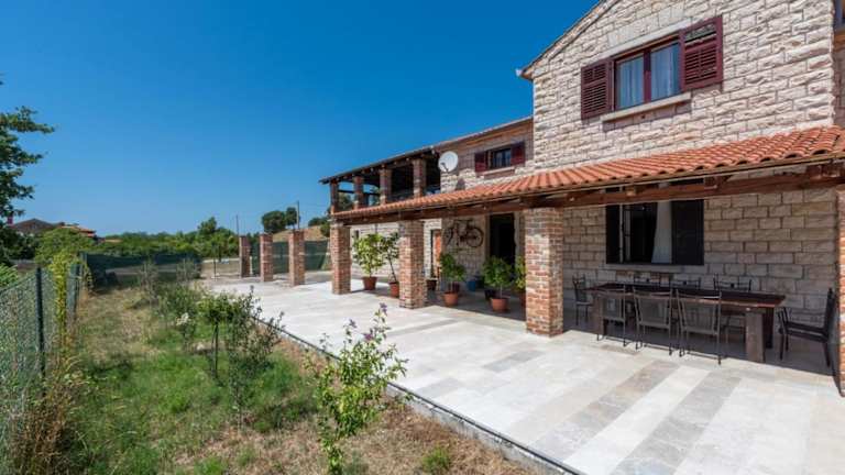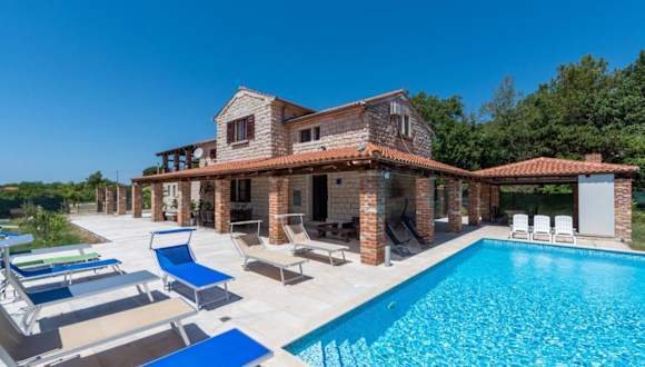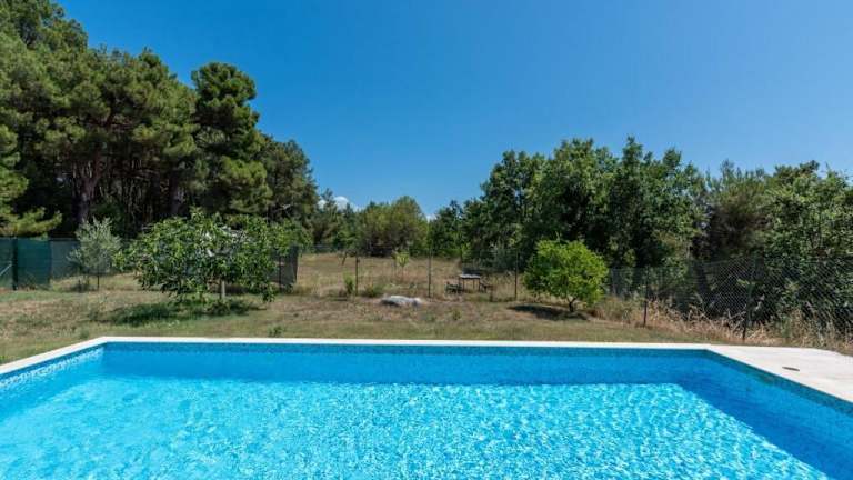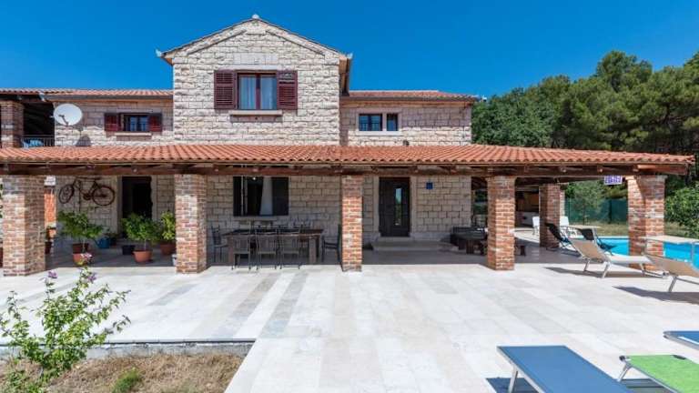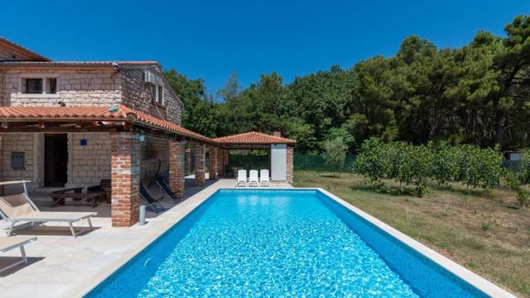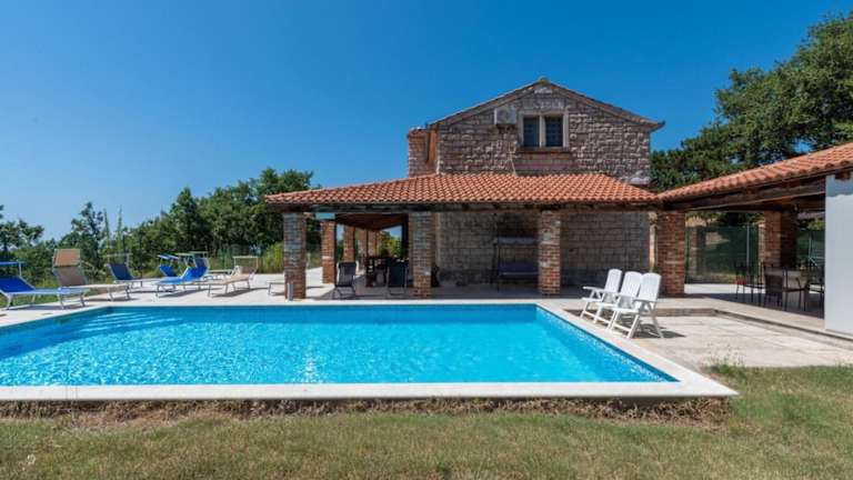 Die Villa Caffe la Parenzana in Višnjan bietet Ihnen eine traumhafte Unterkunft mit einem saisonalen Außenpool und einer Terrasse. Hier können Sie Ihren Urlaub in vollen Zügen genießen und die Nähe zu verschiedenen Sehenswürdigkeiten wie dem Aquapark Istralandia und der Kathedrale St. Eufemia Rovinj nutzen. Die Villa ist klimatisiert und verfügt über 5 Schlafzimmer, ein geräumiges Wohnzimmer und eine voll ausgestattete Küche. Ein Highlight ist der private Pool, der zum Entspannen und Erfrischen einlädt. WLAN und Privatparkplätze stehen Ihnen kostenfrei zur Verfügung.