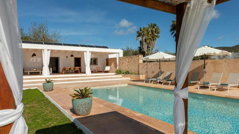 Die Villa Can Vinyes befindet sich in Sant Antoni de Portmany, 15 km vom Yachthafen Marina Botafoch und 16 km vom Hafen Ibiza entfernt. Der Busbahnhof von San Antonio ist 8,5 km entfernt, und der Flughafen Ibiza liegt in einer Entfernung von 20 km.
