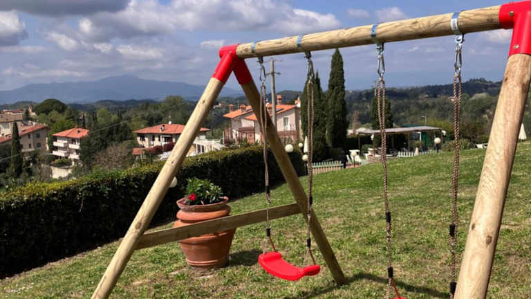 Die Villa Canavetro in Palaia ist ein traumhaftes Ferienhaus mit Poolblick, das Ihnen einen erholsamen Urlaub bietet. Mit fünf Schlafzimmern, einer gut ausgestatteten Küche und fünf Badezimmern bietet die Villa genügend Platz für große Gruppen oder Familien. Genießen Sie den eigenen Pool, den Garten und die Grillmöglichkeiten. Das kostenfreie WLAN und die kostenfreien Privatparkplätze sind weitere Annehmlichkeiten, die Ihren Aufenthalt noch angenehmer machen. Entspannen Sie am saisonalen Außenpool, während Ihre Kinder den Kinderspielplatz erkunden. Die Gemeinschaftslounge lädt zum Verweilen ein. Die Villa Canavetro ist der perfekte Ausgangspunkt, um die Schönheit der Umgebung zu erkunden, einschließlich der Piazza dei Miracoli in Pisa und des Schiefen Turms.