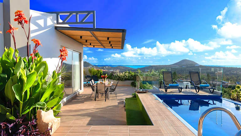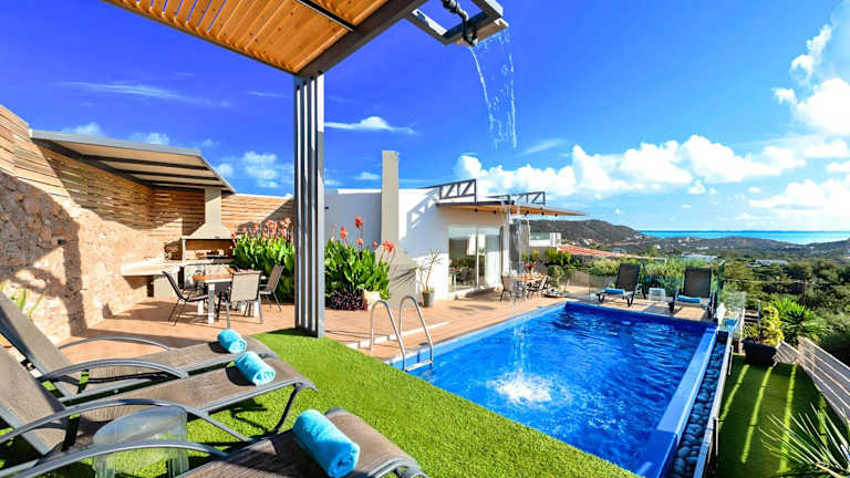 Die Villa besteht aus fünf Schlafzimmern und einem Wohnzimmer, das über eine voll ausgestattete Küche mit Kühlschrank und Kaffeemaschine verfügt. Zudem sind fünf Badezimmer mit Dusche und kostenlosen Pflegeprodukten vorhanden. Handtücher und Bettwäsche werden bereitgestellt. Die Villa ist klimatisiert und bietet einen Blick auf den Pool.