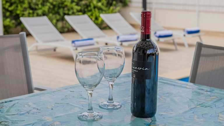 Die Villa verfügt über 2 Schlafzimmer, ein Wohnzimmer und eine voll ausgestattete Küche, die mit Kühlschrank und Kaffeemaschine ausgestattet ist. Ein Badezimmer mit Bidet und Dusche ist ebenfalls vorhanden. Handtücher und Bettwäsche werden bereitgestellt. Die Unterkunft ist klimatisiert.