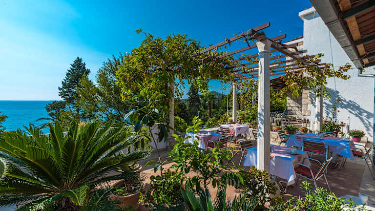 Das Hotel serviert ein köstliches Frühstück mit hausgemachten Säften und Marmeladen auf der Terrasse, die einen spektakulären Blick auf das Meer bietet. Das hoteleigene Á-la-carte-Restaurant lädt zu traditionellen Spezialitäten der Region ein, darunter Meeresfrüchte, Fisch und Fleisch. Das Restaurant liegt nur 50 Meter von der Villa entfernt und bietet eine gemütliche Atmosphäre und eine große Auswahl an köstlichen Gerichten.