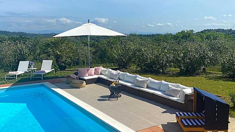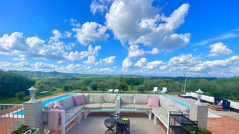 Verbringen Sie Ihren Aufenthalt in der Villa Casa Collina Castelfalfi in Castelfalfi und erleben Sie einen exklusiven Urlaub mit einem privaten Pool, einer Terrasse und atemberaubendem Poolblick. Die klimatisierte Villa bietet 5 Schlafzimmer, 5 Badezimmer, eine voll ausgestattete Küche und eine neue Infrarotsauna für 6 Personen. Genießen Sie den VIP-Service mit privaten Köchen, zusätzlicher Reinigung und einem Chauffeur-Service. Entspannen Sie im herrlichen Salzwasserpool und nutzen Sie die Grillmöglichkeiten im Garten. Die Villa befindet sich in der Nähe von Pisa, Florenz und Siena und bietet einen kostenpflichtigen Flughafentransfer.